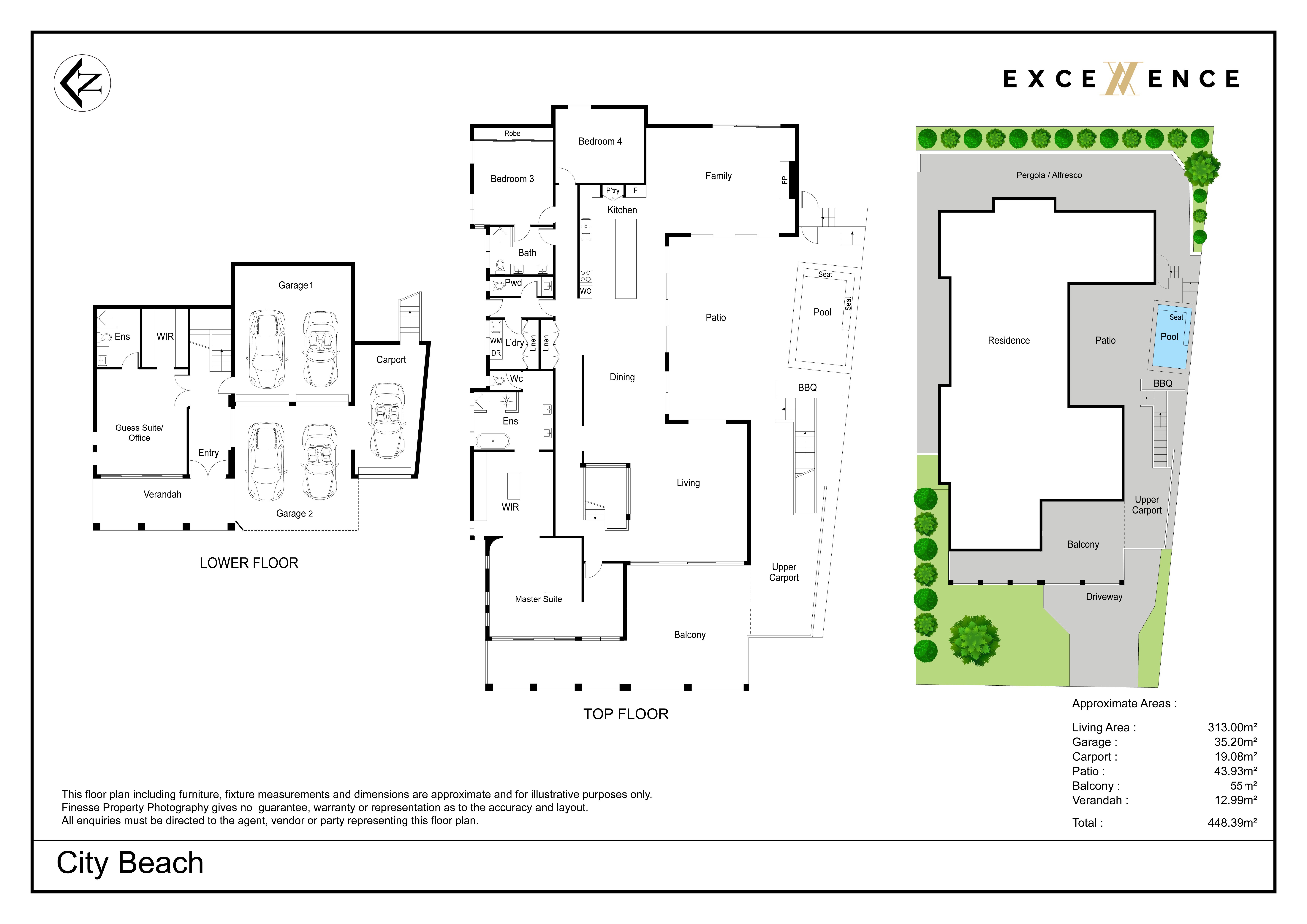 • Approximately 450m² of total built area, thoughtfully distributed across two levels, with primary living zones positioned to maximise connection to outdoor entertaining spaces .